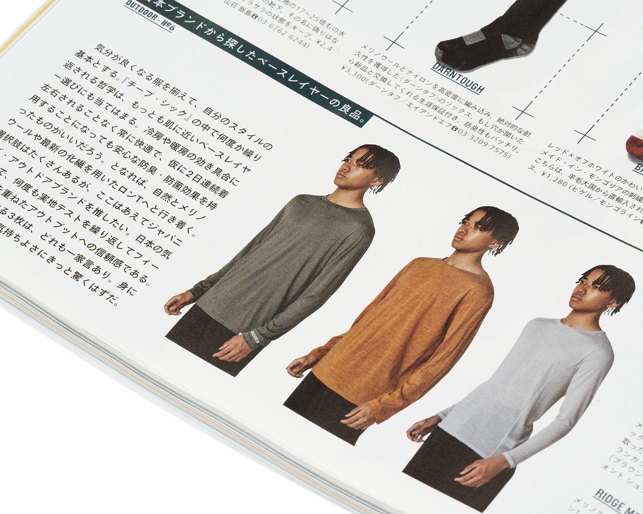 「日本ブランドから探したベースレイヤーの良品。」として『Merino Basic Tee Long Sleeve』を。
