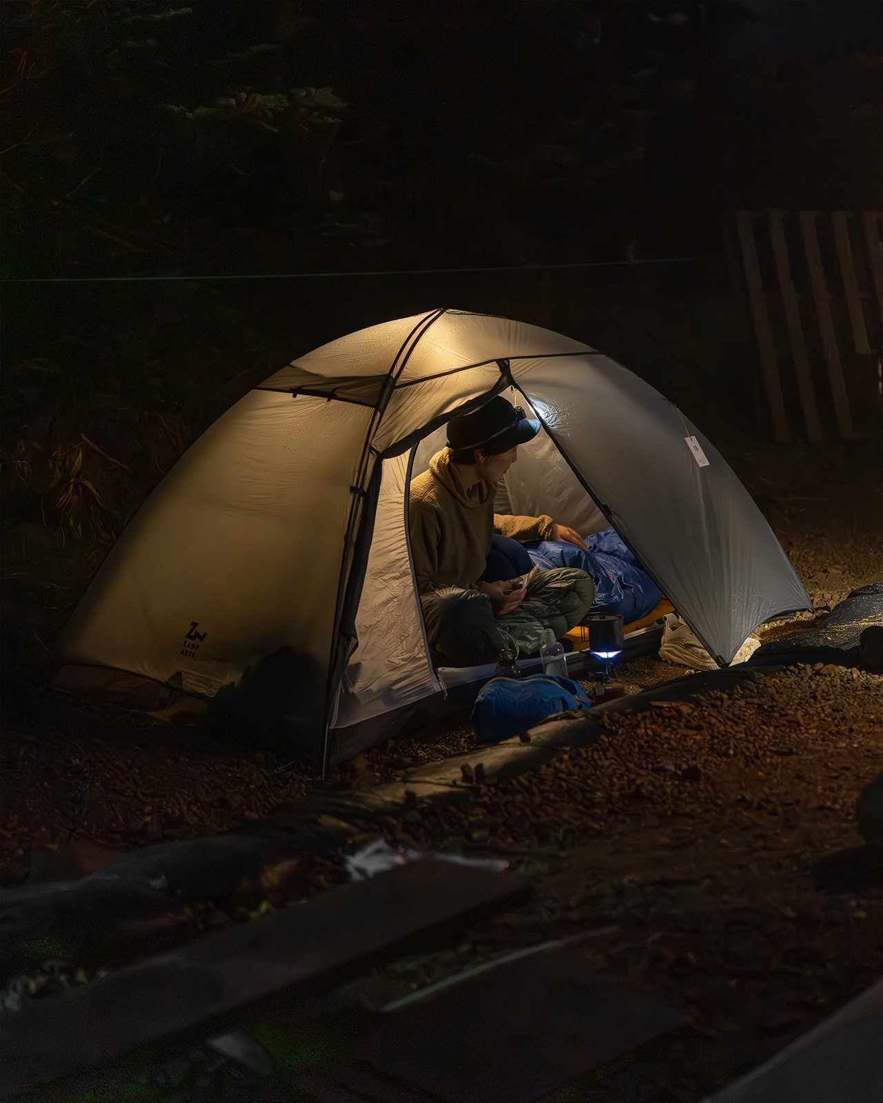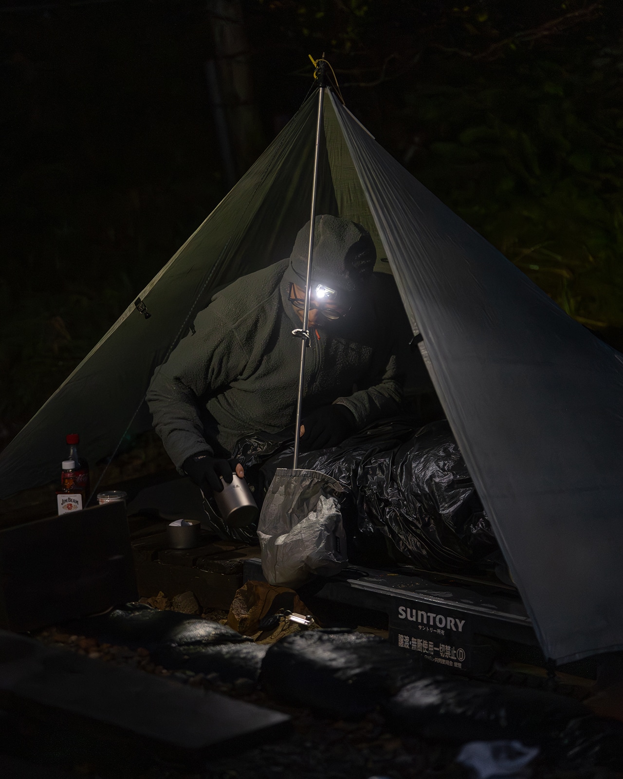 外が薄暗くなりテント場に戻り夕食を摂り各々自由に就寝。こうして一日目は終わり。