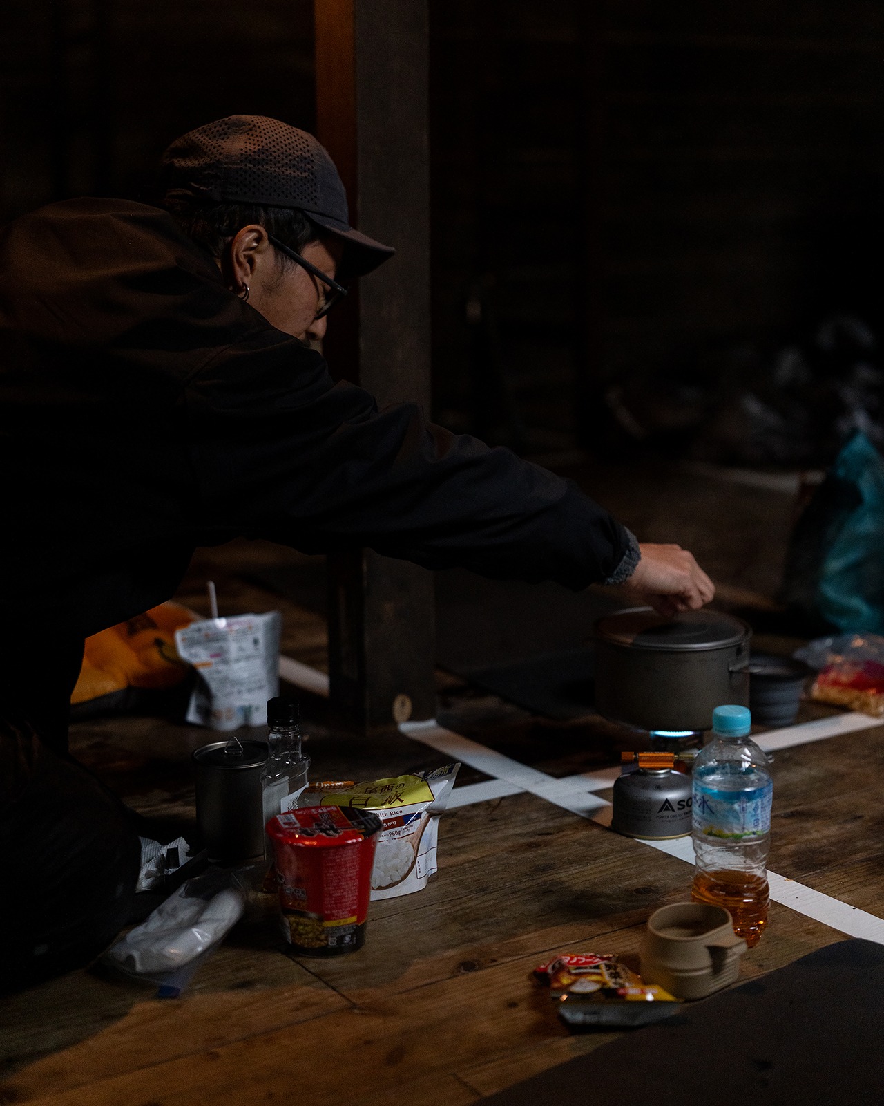 こういう場所の楽しさはやっぱり現地に来ないとわからない。特別なことをしているわけじゃないのに、きちんと豊かさを感じられる。濡れたものを片付けて、湯を沸かして、温かいものを飲む。床に座って、ザックを背にして、外の音を聞く。手元にある道具と最低限の手段できちんと夜を過ごせる。