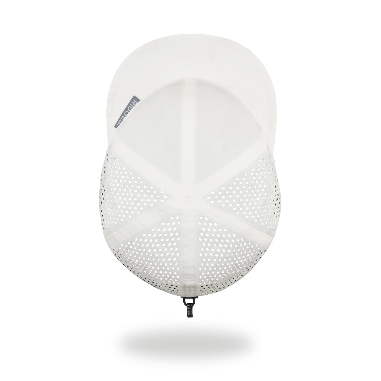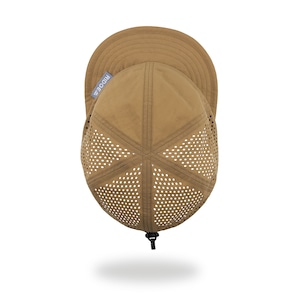 帽子内の熱と湿気が抜けやすくなり、汗戻りや蒸れを抑えます。蒸し暑い樹林帯や風の弱い時間帯でも、帽子内の不快感を少なくする為のパンチング加工です。