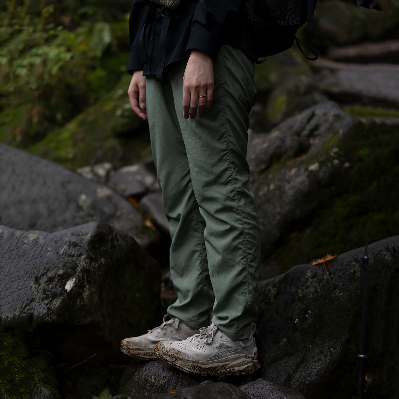 ハイキング時の動きやすさは欲しい。でも、街で履いたときに「いかにも登山パンツ」な雰囲気にはしたくない。そんなわがままを、そのまま形にしました。