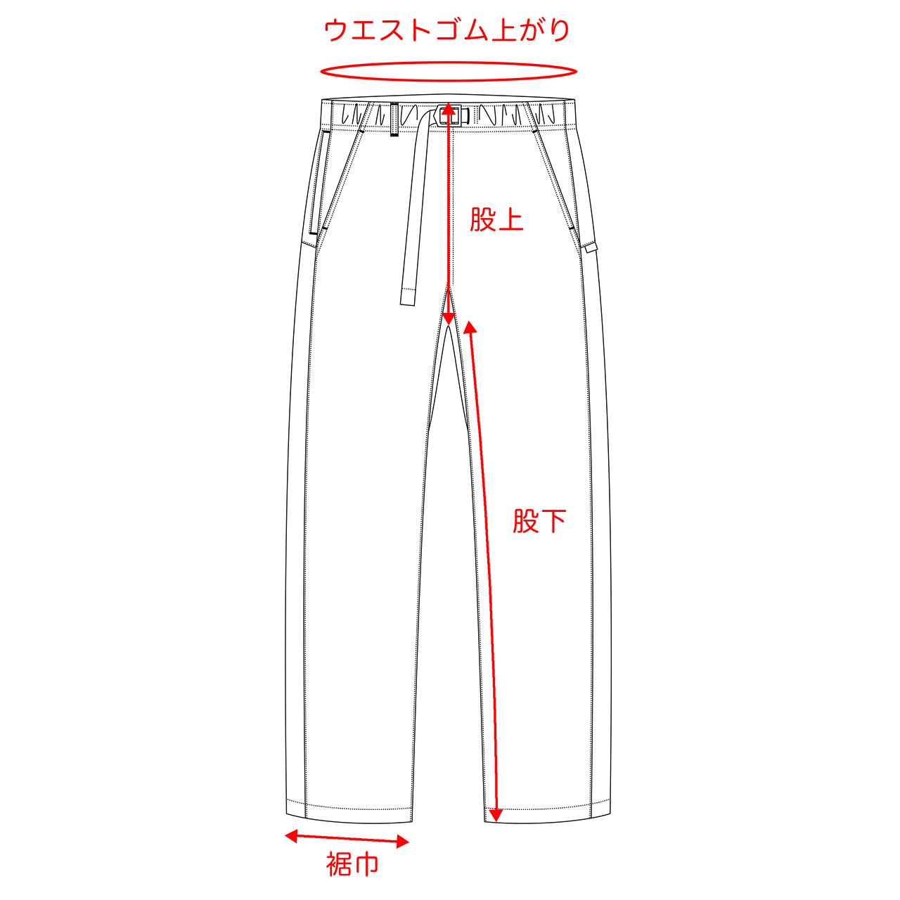 ※若干の個体差がございます。特にパンツ丈部分で1cmほどの前後差がございます。あらかじめご了承くださいませ。