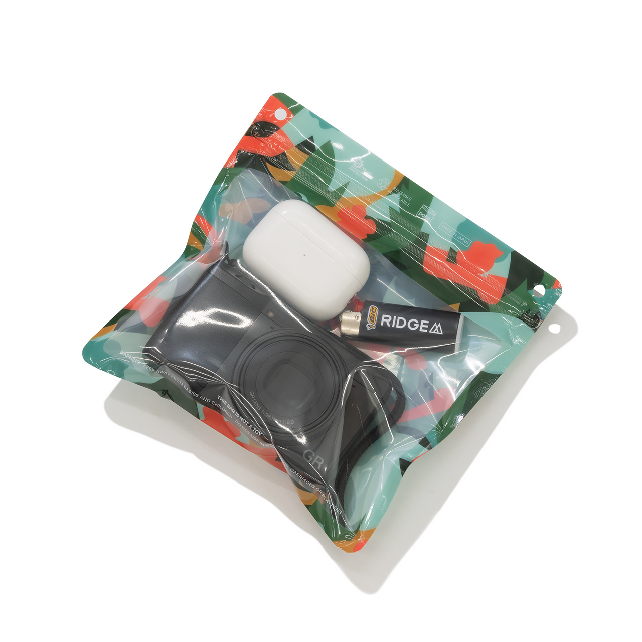 UVカット率80%以上のバリアフィルムを採用し、内容物の日焼けによる変色を軽減。さらに、特殊加工を施したジップにより密閉度を高め、防臭・防滴性を備えています。匂いの気になるものや、ちょっとした液体物、小さな道具類の収納にも安心して使えるのが特徴です。
