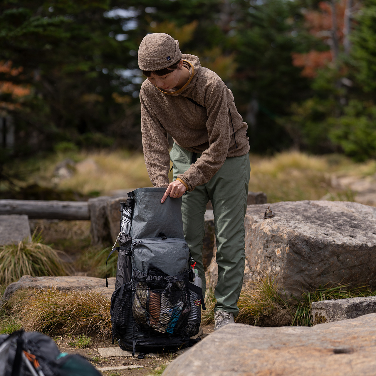 歩き始めの冷えはそっと受け止め、心拍が上がる頃にはフード口をパタパタと下げるだけで、こもった熱が抜けていく。背中にザックがあってもベタつきにくく、呼吸を合わせるように快適さが続きます。