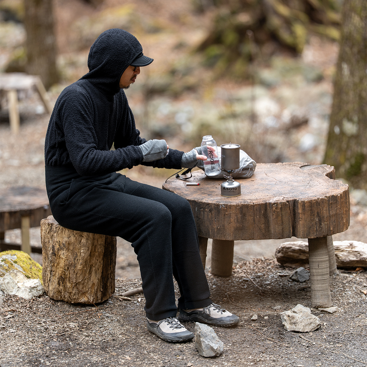 レイヤリングは単純。ベースに薄手の化繊かメリノ、その上にSeion Hoodie(PrimaLoft® Active Evolve)。風が走る稜線や小雨の気配には、上からEnough Shell Jacket(Pertex® Equilibrium) を一枚。Seionが“抜け”を、Enoughが“守り”を分担することで、山の一日の発熱と冷却、行動と停滞の真ん中に、いつも“ちょうど良い”居場所ができる。